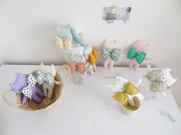 Je couds le soir quand mes enfants dorment et chaque matin mon fils vient fouiner du côté de mon (mini) atelier pour découvrir la production de la nuit, il adore!