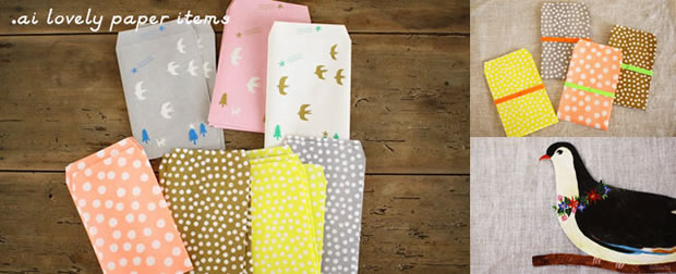 Fukawa Aiko, illustratrice japonaise aux multiples talents, dessine et créé des objets sous la marque ai (jolis papiers, cartes ou encore accessoires). A retrouver entre autre sur le sublime shop Uguisu.