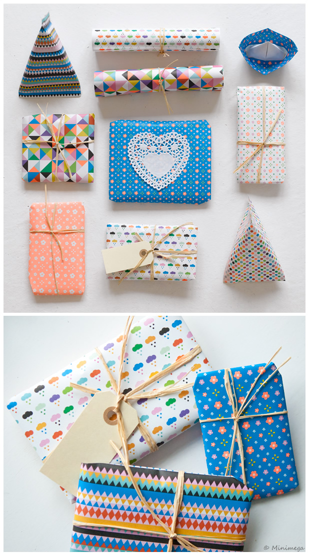 No problemo ! Suffit d’avoir sous la main le kit d’emballage de Minimega qui propose des papiers aux motifs graphiques et colorés… Merveilleux et presque criminel de penser qu’ils finiront déchirés !