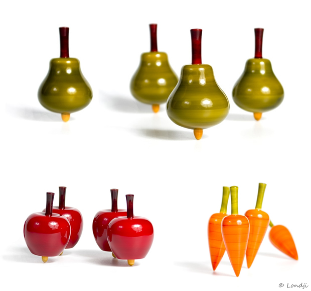 Pour lutter contre la toupie hyper vitesse… quelques jolies toupies fruits appétissantes de chez Londji.