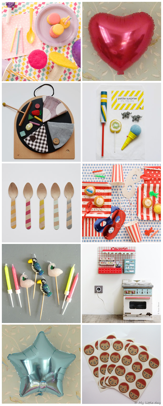 En plus d’une très jolie sélection de party box (par thèmes… oui Madame !), les filles de My Little Day dénichent pour nous/vous une multitude de jolies choses, et les moindres détails sont étudiés : de la cuiller décorée aux pochettes cadeaux, des gourmandises à la crêpe party en bois, des bougies aux p’tites surprises… Bref tout est passé en revue, tout y est et tout est beau.