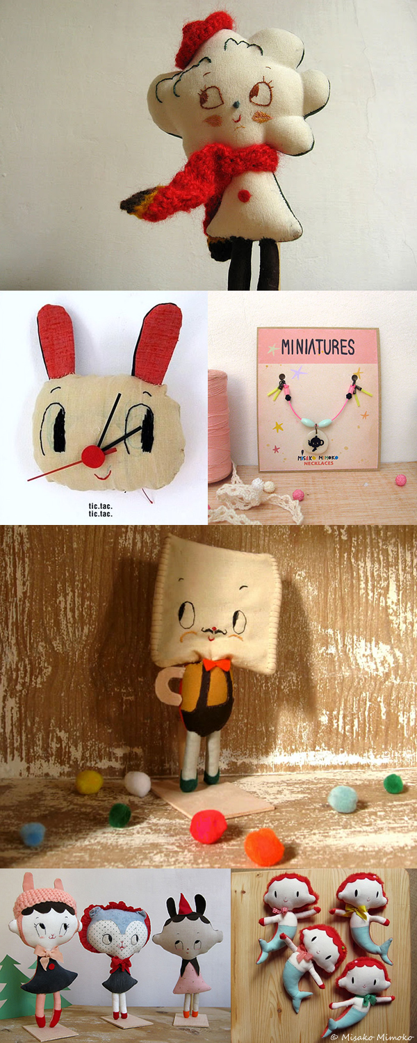 Des petits personnages inspirés tout droit sortis d’un monde fou fou mais aussi des objets parfois insolites comment le bracelet fausse-montre, ou jolis-chics comme ce petit collier théière coloré ou encore pointus comme le lapinou horloge.
