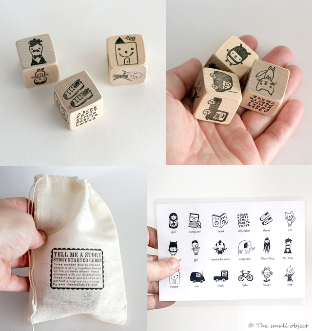 Tell me a story est un petit set de dés, imaginé par The small object. Ce jeu, petite merveille graphique, est en plus un moyen très inventif de développer la créativité et l’imagination de nos petits nains.