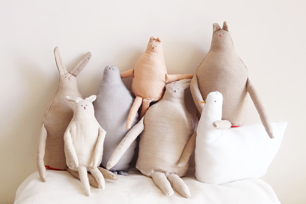 Un bestiaire fait de chat, lapin et autre petit phoque… Compères à adopter, bien calés, seuls ou accompagnés.