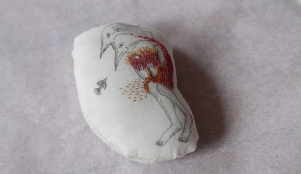 Petits brodés gracieux et tout de fil vêtus. Endormis ou à l’affut, guettant quelques oeufs à venir.